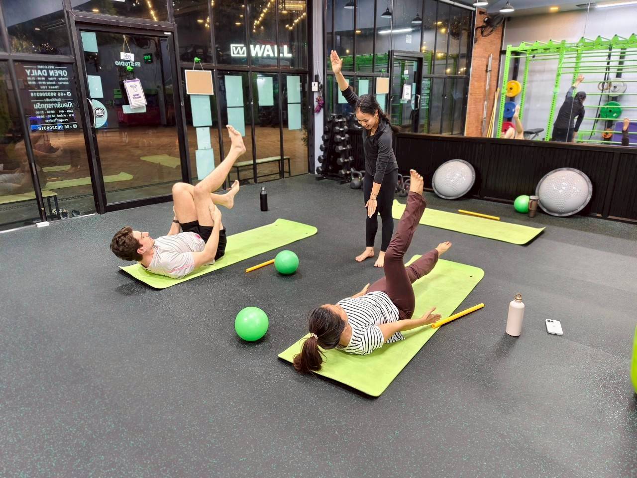 The Wall Studio offers Pilates classes taught by highly experienced and fully certified instructors who are able to communicate effectively in English. Pilates is a low-impact exercise method that focuses on strengthening the core muscles, improving posture, flexibility, balance, and overall body control. The movements are performed with controlled breathing and precise technique, helping to build strength without putting excessive stress on the joints. Pilates is suitable for all fitness levels, including beginners, as well as those looking to improve body awareness, prevent injuries, or support rehabilitation. Regular practice can help enhance muscle tone, increase mobility, and promote both physical strength and mental focus.